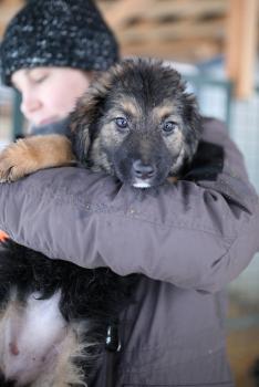 Lana on kiva ja reipas pentu, joka odottaa Irinan tarhalla uuden elämän alkua. Lana päätyi tarhalle kesällä.