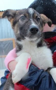 Pouta on ystävällinen ja vielä varsin rauhallinen pentu. Vaan eiköhän tästäkin tytöstä vauhtia löydy, kunhan Pouta kotiutuu paremmin!