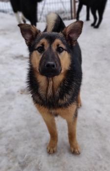 Suloinen Vilda hylättiin yhdessä veljensä kanssa. Vilda tulee tutustumaan iloisesti, mutta vähän varovaisesti vieraisiin ihmisiin.