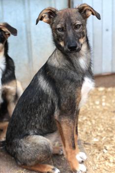 Paksuturkkinen ja ystävällinen Nuunuu pelmahti parin muun pennun kanssa Irinan tarhalle kesämökkialueelta eli datsalta.