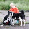 Hihnassa Zaika oli hellyttävä. Se sinkoili vähän sinne tänne, sukelsi nöyristellen kaikkien tapaamiensa koirien jalkoihin ja hyppeli innoissaan. Ja voi sitä iloa, kun Zaika tunnisti emonsa vähän matkan päästä! Se riensi vauhdilla tutun hahmon luo, tervehti Shelmaa iloisesti ja aloitti leikin.