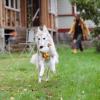Vaikka Alma ei ole ihan nuori, se intoutuu mielellään leikkimään vaikkapa vetoleikkiä ihmisen kanssa ja juoksemaan kilpaa koirakaverin kera. Se tulee mukavasti toimeen tuttujen koirien kanssa. Leikkiessään se käyttää melko paljon hampaitaan, mutta ei niin, että se tekisi kipeää.