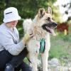 Helmikuussa tapaamamme nallekarhumainen Bucha tallusteli letkeästi kanssamme hihnassa ja tilaisuuden tullen nosti etukäpälänsä ihmistä vasten, rapsutukset mielessään tietenkin.