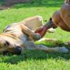Elia pääsi tarhavieraiden kanssa aitauksen ulkopuolelle hihnassa. Kaikki tuoksut kiinnostivat poikaa kovasti.