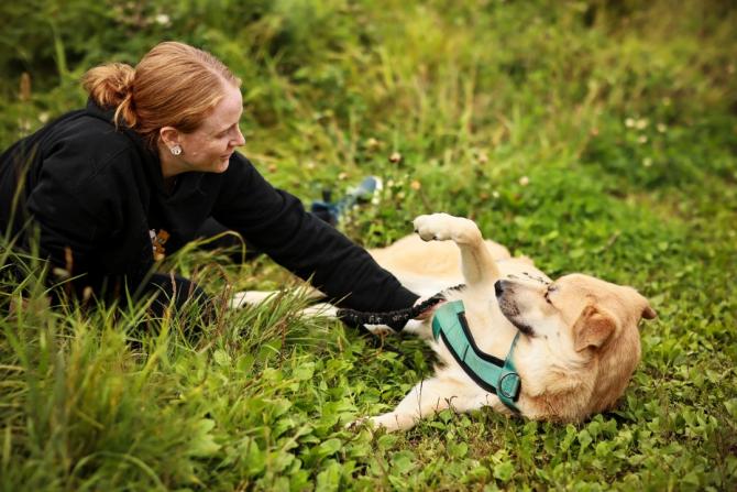 Iloisena tuikkivat silmät katsovat luottaen lähestyviä ihmisiä. Rapsutuksia ja läheisyyttä, tämä on Fantikin onnenpäivä!