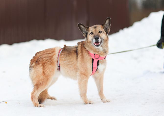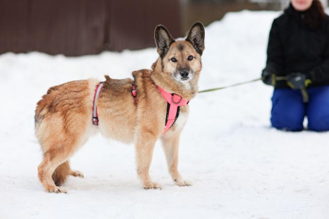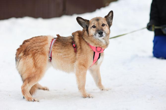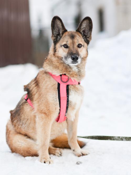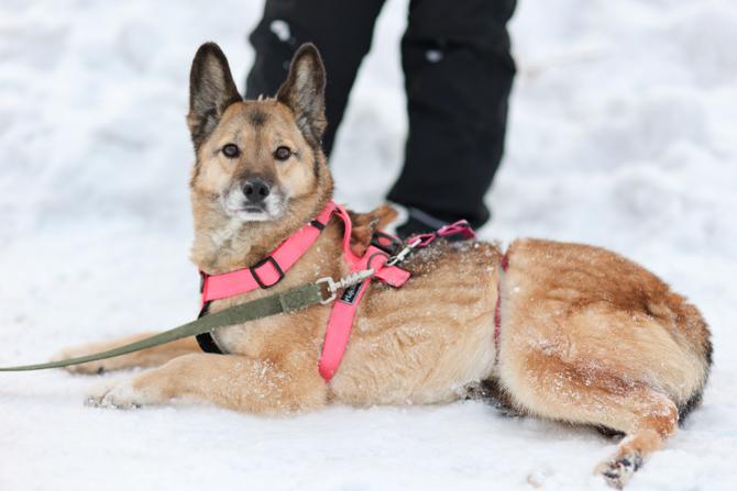 Koska Haiku on kasvanut tarhalla pennusta aikuiseksi, on sen kokemusmaailma jäänyt myös varsin kapeaksi. Siksi Haiku jännittää monia uusia asioita, esimerkiksi hihnan laittamista. Jos harkitset kodin tarjoamista Haikulle, luethan ajatuksella tekstimme aran aikuisen koiran sopeuttamisesta uuteen kotiin.