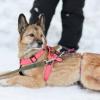 Haiku ei ole ollut koskaan hihnassa ja niinpä päätimme, että nyt on aika kokeilla mitä se varusteista ja hihnasta sanoo. Tämä siksikin, että poikaa saattaa pian odottaa hoitopaikka Suomessa. Haiku antoi nätisti ottaa itsensä kiinni ja varusteiden pukeminen oli sille kohtalaisen helppoa. Sitten koitti hetki, kun aitauksen ovi avautui ja Haiku laskettiin tarhan porttien ulkopuolelle katselemaan lumisia maisemia. Haiku oli melkoisen huuli pyöreänä. Se kykeni kuitenkin koko ajan syömään nameja vaikka hihnan kiristyminen aiheuttikin joka kerta pienen ahdistuksen ja kiepsahduksen hangessa. Pariin otteeseen möngittiin lumikasassa ja hetken aikaa istuskeltiin ja katseltiin ympärille. Tämä lyhyt ja jännittävä kokemus sai Haikun pian vetämään takaisin omaan, tuttuun aitaukseensa minne se pian palautettiin ja sinne Haiku jäi iloisena heiluttamaan häntäänsä.