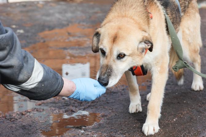 Kun Iris näkee ihmisen, se tanssahtelee ja heiluttaa häntää niin, että koko koira keikkuu. Verkkoaidan suojissa se tulee mielellään hakemaan nameja ja haistelemaan tulijaa lähietäisyydeltä, mutta aitaukseen astuva vieras jännittää melkoisesti. Iriksellä on kavereinaan hyvin arka narttukoira ja ihmisiin arvaamattomasti suhtautuva uroskoira, ja aitauksessa tulee siksi käytyä harvoin.