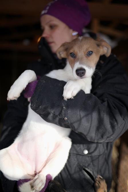 Ivana on selvästi hyvin ihmisrakas tyttö, sillä se juoksee aina verkolle vastaan ja häntä heiluen odottaa ihmisten tuloa. Kuitenkin sitä alkaa vähän ujostuttamaan, kun aitaukseen menee sisälle. Se pyörii kyllä muiden pentujen mukana tulijoiden jaloissa, mutta silittäminen ja syliin nostaminen ovat vielä vähän jänniä juttuja. Kuvaamista varten Ivana napattiin kuitenkin syliin ja kiltisti se siinä istuskeli, vaikka tilanne sitä vähän jännittikin.