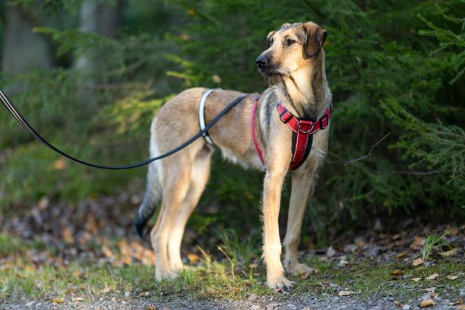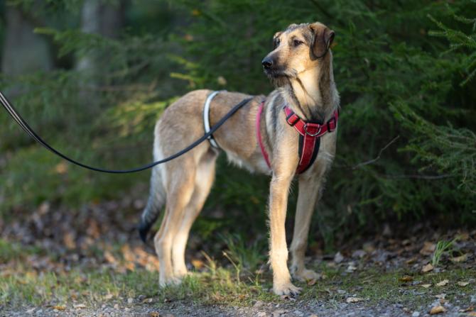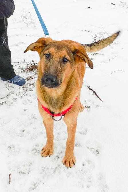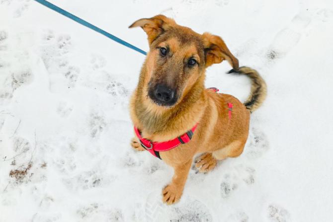 Sisäsiisteys on hyvällä mallilla ja muutaman tunnin yksinolot koirakaverin kanssa ovat sujuneet rauhallisesti. Valjaiden pukeminen sujuu hyvin. Jella on myös päässyt mukaan metsäretkelle, joka oli mieluinen ja rohkaiseva kokemus.