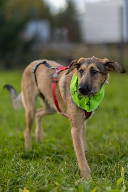 Jella vaikuttaa uteliaalta ja eloisalta tytöltä, joka on päässyt onneksi tarhalla seurustelemaan useiden ihmisten kanssa. Siitä kiitos paikallisille vapaaehtoisille, jotka käyvät viikoittain ulkoiluttamassa koiria ja auttamassa niiden valokuvaamisessa ja videoimisessa. Jella on myös saanut tottua varusteisiin eikä valjaissa oleminen näytä tuottavan sille vaikeuksia. Tyttö mennä spurttailee iloisena moikkaamaan milloin ihmisiä ja milloin muita joko hihnassa tai vapaana kuljeskelevia koiria. Ihastuttava Jella vaikuttaa olevan täynnä elämäniloa ja jatkaisi matkaansa jo mielellään omaan kotiin.