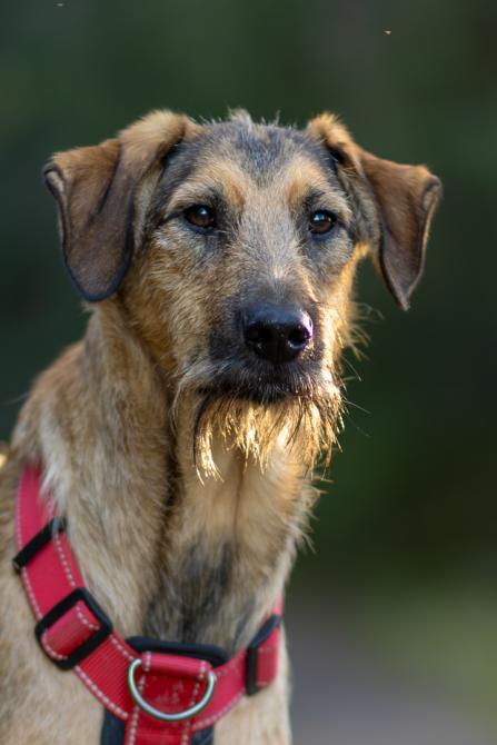 Suloisella pikku parralla varustettu Jella on onneksi saanut tarhallakin nauttia ihmisten seurasta, ainakin sunnnuntaisin vaoaaehtoisten lenkityspäivänä. Jella onkin tutustunut monenlaisiin ihmisiin ja valjaat sekä hihna ovat myös tulleet tutuiksi.