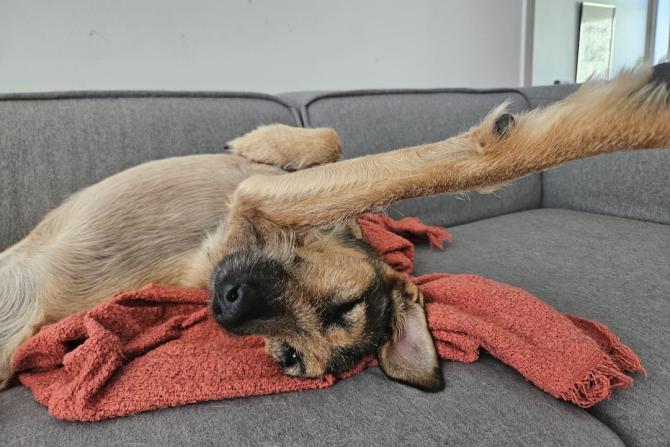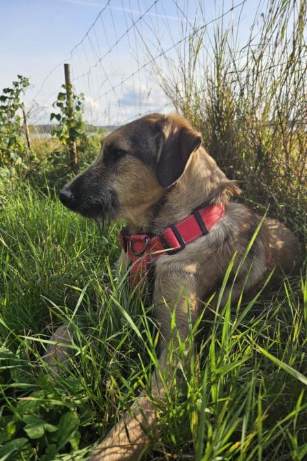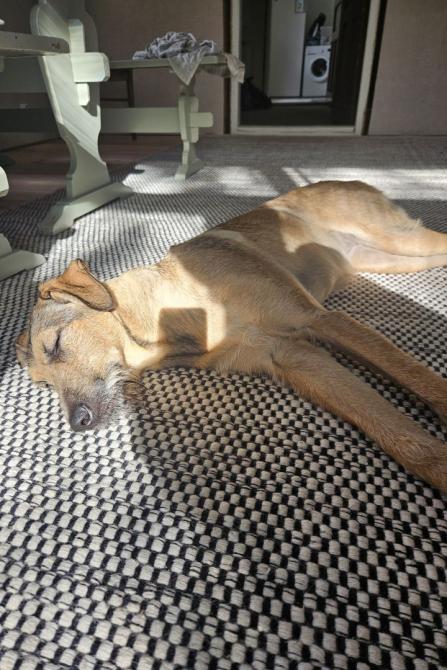 Jella on ollut kotihoidossa viikon ajan. Kotikoiran tavoille opettelu on ollut jännittävää mutta edistynyt kuitenkin hienosti.