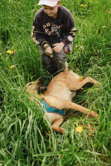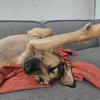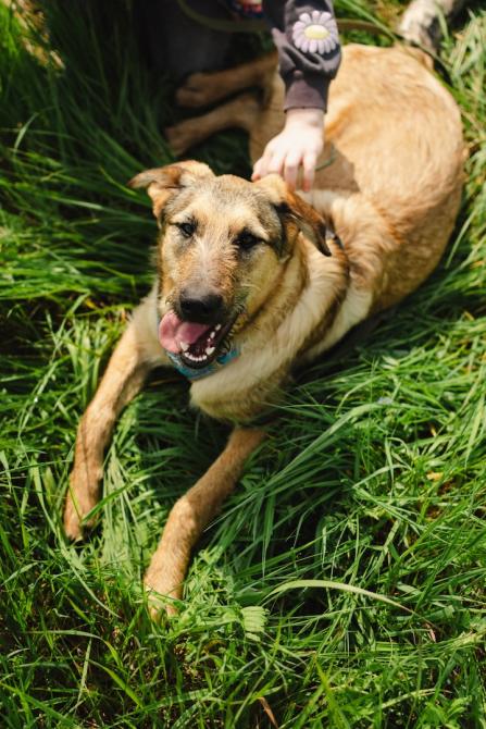 Jella on oppinut luottamaan kotihoitoperheen molempiin aikuisiin ja perheen rauhalliseen 11-vuotiaaseen lapseen. Jella hakee rapsutuksia ja huomiota, mutta osaa myös rauhoittua.