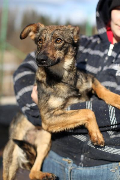 Pieni maastonakki Varvara muutti tarhanpitäjän kodista suoraan hoitopaikkaan Suomeen. Mukava ja ystävällinen Varvara on hoidossa Vihdissä.