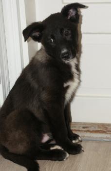 Kaunis Astrid on sympaattinen ja suloinen tyttö. Astrid vähän ujostelee vieraita, mutta sylissä ollessa alkaa jo pieni häntä heilua.