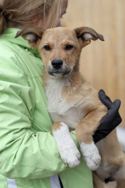 Vuokko on iloinen ja utelias pentu, jonka mielestä ihmiset ovat ihania! Vuokko päätyi Irinan tarhalle kolmen siskonsa kanssa.