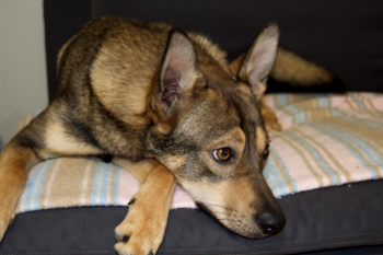 Domi osoitti jo ensimmäisenä päivänä sijaiskodissa, että kotikoiran taidot ovat hyvin hallussa – aina sohvanvaltausta myöten.