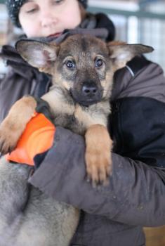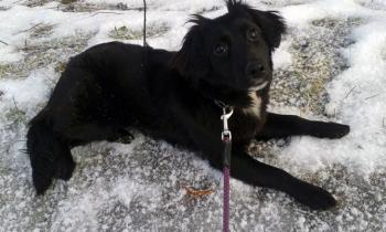 Fani innostuu kovasti uusista ihmiskavereista: se tassuttaa perässä häntä heiluen ja haluaa syliin heti vain kun se on mahdollista!