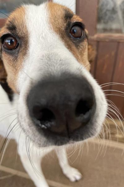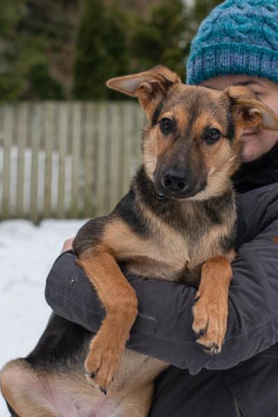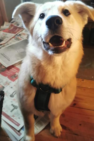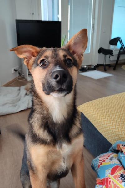 Josi pääsi Suomeen! Pörröparta Josi odottaa kotiehdokkaita hoitopaikassaan Helsingissä.