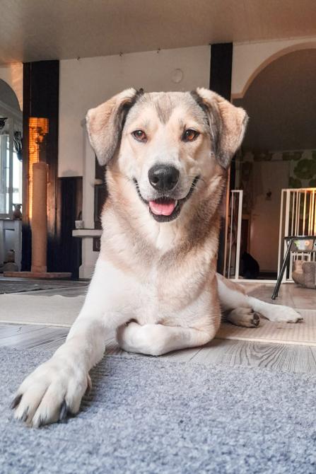 Lara on viettänyt jo reilut neljä kuukautta kotihoidossa, ja siinä ajassa ujosta sivustaseuraajasta on kuoriutunut kaikkeen tekemiseen innokkaasti osallistuva kotikoira.