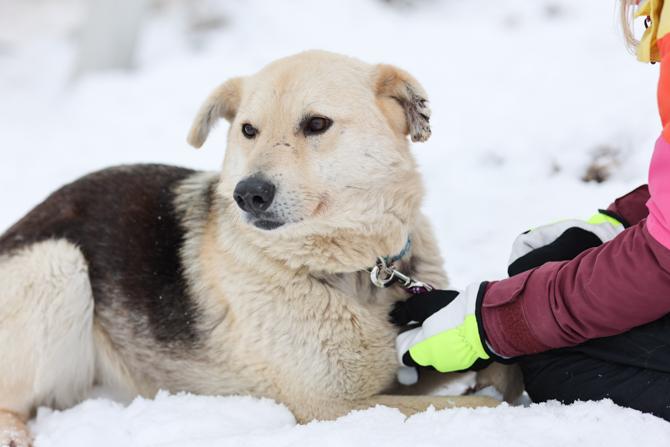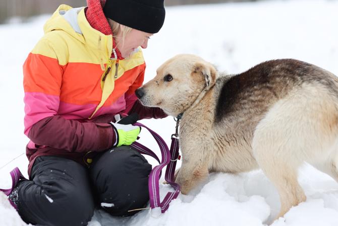 Liikuttava Lenni pääsee kanssamme maaliskuussa kävelylle. Kulkeminen ilman perässä laahaavaa ketjua tuntuu siitä varmasti oudolta, samoin maisemat tarhan ulkopuolella. Lennin edellisestä kävelystä kun lienee pieni ikuisuus. Lenni varoo alkuun hiukan kosketusta ja kohti tulevaa kättä, mutta kun se huomaa ettei mitään ikävää tapahdu, uskaltaa se jopa itsekin pyytää rapsutuksia. Elenan seurassa Lenni on rennompi ja uskaltaa pyytää herkemmin huomiota. Muutenkin se ilostuu kovasti tuttujen näkemisestä. Hihnakävelyllä Lenni reagoi neutraalisti muihin koiriin.