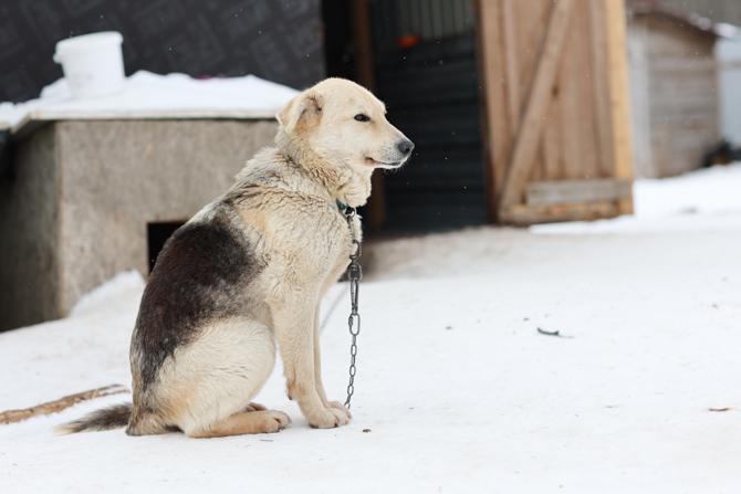 Huomaamme, että elämä ketjussa ei ole tehnyt hyvää myöskään Lennin kropalle. Lennin asento on kyyry ja se seisoo selkä hieman köyryssä, osittain jännityksestä, osittain lihaksettomuudesta ja liikuntaan tottumattomuudesta. Lennille tekisi niin hyvää saada juosta vapaana pihalla.