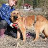 Liekki jakaa saman aitauksen usean muun koiran kanssa, joihin osaan olemme jo tutustuneet paremmin. Nyt on Liekin vuoro päästä kokeilemaan hihnakävelyä. Varusteiden pukeminen jännittää sitä ja Liekki pötkisi ennemmin karkuun kun jäisi puettavaksi. Se antaa kuitenkin käsitellä itseään nätisti ja varusteet saa äkkiä säädettyä pojalle sopiviksi.