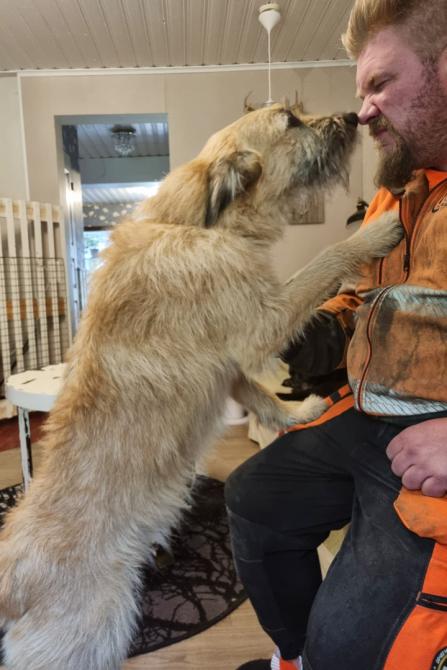 Nalle on viettänyt kolme viikkoa Suomessa kotihoidossa. Nalle on kotihoidossa useamman koiran sekä kahden aikuisen kaksijalkaisen taloudessa maalla omakotitalossa. Alusta asti Nalle on tullut sujuvasti toimeen muiden koirien, niin urosten kuin narttujenkin kanssa. Nallen lempipuuhaa onkin leikkiminen toisten koirien kanssa. Ja jos ulkona ei kukaan lähde leikkimään, keksii Nalle kyllä muutakin kivaa puuhaa, kuten puutarhaletkun maistelua tai rottinkisohvan tuunaamista. Nalle on siis pentumaisen vilkkaalla mielikuvituksella varustettu.