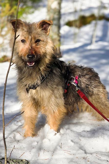 Tuo ulkonäkö. Tuo katse. Aivan kuin nuo samat silmät olisivat joskus katselleet pelokkaina kuljetushäkin perältä. Kun viereisestä kuljetushäkistä juuri ulos singahtanut pusumaakari nauttii antaumuksella rapsuttajista ympärillään, pelokas karvamytty on tiukentanut keräänsä, peittänyt kuononsa takkujen suojiin ja halunnut olla kuin ei olisikaan.
