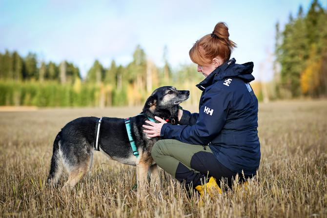 Ninni saattaisi sopia myös ainoaksi koiraksi rauhalliselle alueelle, kunhan kodissa ollaan valmiita panostamaan yksinoloharjoituksiin. Vaikka Ninnillä yksinolot sujuukin hyvin, on paikalla ollut aina koirakavereita: kokonaan yksin Ninni ei koskaan elämässään ole ollut.