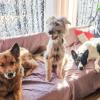 Elena kantoi sisaruskolmikon kuvaamista varten tarhalla sijaitsevaan lämmitettyyn tupaan, missä oli muita koiria aivan pikkutirriäisistä suureen jättiin. Kaikki saivat olla siellä suojassa talven koleudelta. Papu oli jännittynyt ja häkeltynyt tästä ympäristönvaihdoksesta. Se ollut ainakaan alkuun kovin reippaana tutkimassa paikkoja vaan pysytteli mieluummin makuulla tarkkailemassa tapahtumia ja muiden touhuamista. Hiljalleen meno alkoi näyttää siltä, että Papukin halusi liittyä joukkoon vaikka varovaisuus takaraivossa kolkuttelikin.