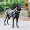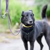 Tammikuisella tarhareissullamme tutustumme erään aitauksen koiriin. Päätämme ottaa asukkaat ulos kävelylle jotta pääsemme tekemään niiden kanssa paremmin tuttavuutta. Kaksi ensimmäistä ovat jonossa jo ihan valmiina, mutta kolmas, tuo musta laiheliini pysyy varjoissa. Emme kuitenkaan jätä sitä aitaukseen kyhjöttämään vaan puemme varusteet sillekin ja kannamme ulos tarhalta.