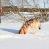 Tässä koirassa on jotain tuttua. Aivan, sehän asui tarhalla jo ennen kuin koronapandemia sulki rajat. Muistamme Rikan iloisen naaman pilkistäneen eräästä aitauksesta. Nyt, muutamaa vuotta myöhemmin, Rika pääsee kanssamme hihnakävelylle lumiselle pellolle. Se on innoissaan aivan kaikesta: paksusta hangesta ja jokaisesta tapaamastaan ihmisestä. Rapsutukset ja kaikenlainen hellittely on Rikan mieleen; se oikein heittäytyy syliin naama virneessä. Ihan sama onko vastassa mies vai nainen, täältä tullaan!