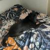 Yksinoloja Rimma on harjoitellut kotihoidossa jo tunnin tai parin koirakavereidensa kanssa ja pysynyt täysin rauhallisena. Yöt Rimma nukkuu hyvin, on sisäsiisti ja uskaltaa jo ulkoilla pihatarhassa omaan tahtiin. Reippaus lisääntyy koko ajan, ja viikossa on opittu paljon!
