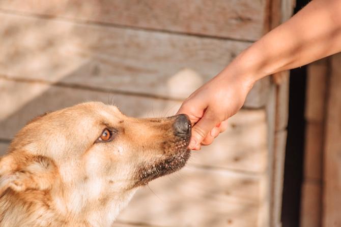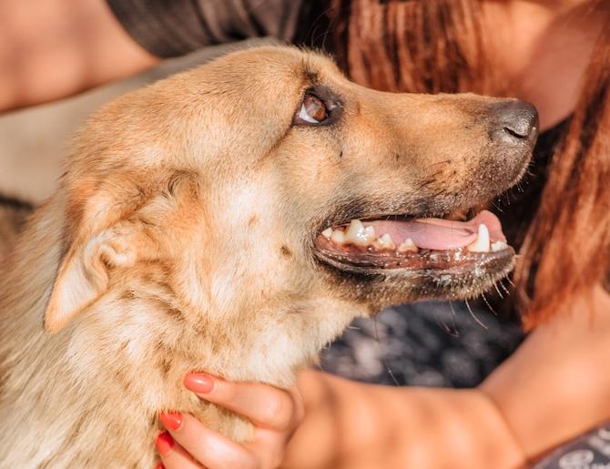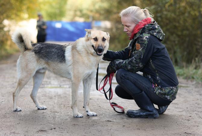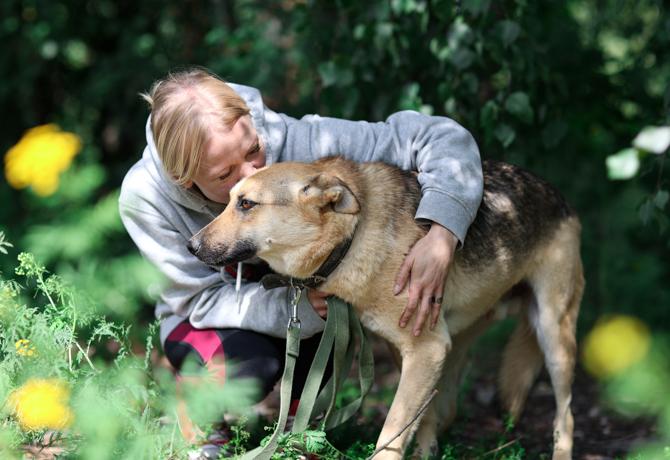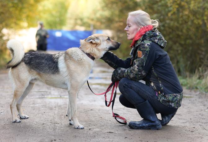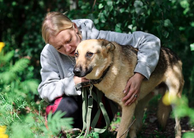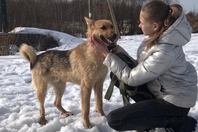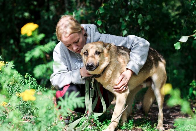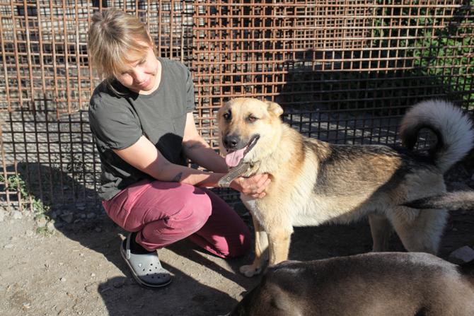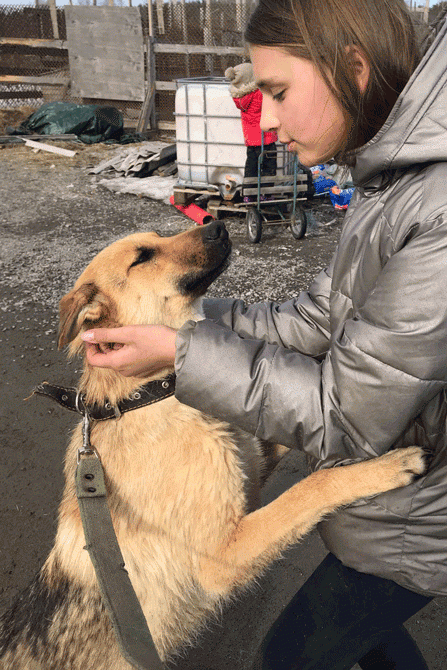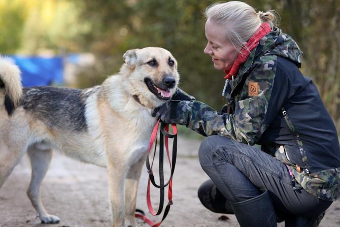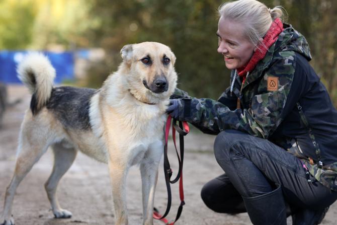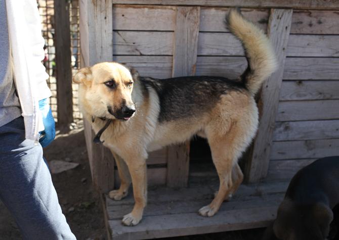 Pääsimme huhtikuun alussa pitkästä aikaa vierailemaan Margaritan tarhalla. Myös Ron pääsi ulkoilemaan aitauksestaan ja syömään vieraiden tuomia tuliaisia. Se vaikutti avoimelta ja ihmisiin luottavaisesti suhtautuvalta. Herkut ja rapsutukset kelpasivat ja Margarita kertoi, että Ron tulee hienosti toimeen muiden koirien kanssa sukupuoleen katsomatta. Margaritan kertoman mukaan vuodet tarhalla ovat kuitenkin johtaneet siihen, että miehiä Ron on alkanut lähiaikoina jännittämään.