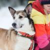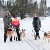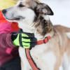 Sahra kävelee hihnassa tottuneesti. Tietysti ilmassa on innostusta ja hihnat menevät välillä solmuun kolmen koiran kanssa, sillä aitauksesta pääsee ulos niin harvoin ja lumisella tiellä jaloittelu, hajut ja maisemat saavat pään pyörälle ilosta. Sahra suhtautuu mukana olleeseen vieraaseen pienikokoiseen urokseen ystävällisen uteliaasti. Pienen tovin kuluttua vierellä kävelee jo oikein nätisti kävelevä tyttö ja Sahran kanssa on mukava kävellä. Se on kiinnostunut ihmisistä ympärillään kesken ulkoiluhetkenkin eikä millään malttaisi olla antamatta pusuja.