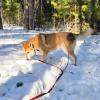 Vaikka hihnakävely ei ole tuttua, Sean kykenee kävelemään rennosti hihnassa tarhan lähellä olevilla metsäpoluilla ja näyttää luottavan tuttuun ihmiseen eli Elenaan.