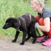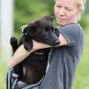 Musta Sigrid erottuu muuten ruskeasta sisaruskatraasta ja ulkonäöltään se muistuttaakin eniten joukkion emoa, joka on myös musta. Sigrid seisoo takajaloillaan aitauksessa ja yrittää toiveikkaana päästä tervehtimään tarhavieraita. Pennut ovat innoissaan ihmisistä ja ilahtuvat suunnattomasti saadessaan seuraa. Sigrid tekee mielellään tuttavuutta vieraisiin, mutta kuumassa aitauksessa on hellepäivänä tukalat oltavat. Puemme tytölle varusteet ja kannamme sen ulos tarhalta. Sigridiä jännittää tarhan ulkopuolella eikä se oikein uskalla liikkua, ainakaan kovin pitkälle sisaruksistaan. Namit kelpaavat ja tovin ihmettelyn jälkeen uteliaisuus jo vähän heräilee, mutta kauas ei silti uskalleta. Sigrid ei ole tottunut varusteisiin ja nekin aiheuttavat tytössä jännitystä. Sigrid istuu sylissä nätisti, hiukan hämmentyneenä, mutta rimpuilematta. Se hetkittäin rentoutuu enemmän, ottaa kontaktia ja tulee antamaan muutaman pusun. Kyllä tästä tytöstä vielä ihana ystävä jollekin tulee, mutta tarhalta olisi päästävä äkkiä pois.