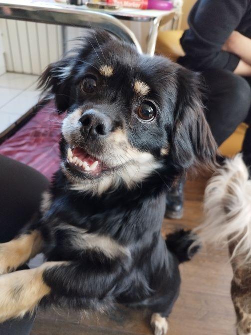 Sonja on elellyt muutaman kuukauden Olgan kotona isohkossa koira- ja kissalaumassa. Olga kehuu tyttöä suuresti, eikä syyttä. Tapasimme Sonjan huhtikuun lopussa ja meitä vastassa oli suloinen, pientä häntäänsä heiluttava tyttö, jonka koko pieni olemus oli iloa ja riemua täynnä. Rapsutukset kelpasivat oikein hyvin meiltä vieraammiltakin, mutta etenkin tutun Olgan viereen se hakeutui tyytyväisenä. Olga pitäisi Sonjan itse enemmän kuin mielellään, mutta ikä alkaa painaa ja koiralauma on sielläkin paisunut melko suureksi. Niinpä Sonjalle yritetäänkin löytää nyt oma koti Suomesta.