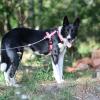 Taiga pääsi kanssamme hihnakävelylle tarhan ulkopuolelle. Hihna oli sille uusi ja jännittävä asia. Kovin montaa askelta Taiga ei uskaltanut ottaa ja aika käytettiinkin melkein kokonaan ympäristön tarkkailuun joko istuen tai maaten. Taiga on sittemmin päässyt vapaaehtoisten kanssa toistamiseen harjoittelemaan hihnassa olemista. Taiga on kovin kaunis mutta varovainen tyttö. Se kuitenkin ilahtuu ihmisistä, mutta ei uskalla noin vain luottaa vieraisiin.