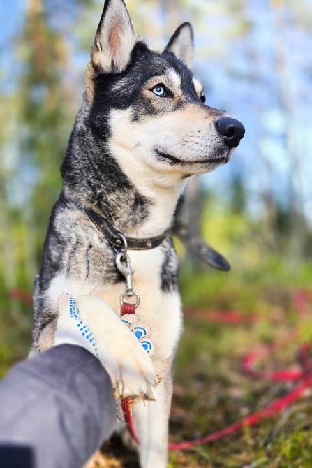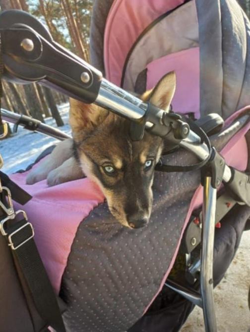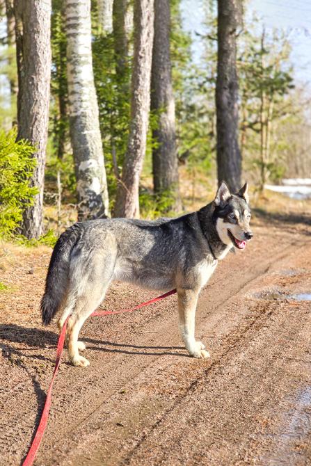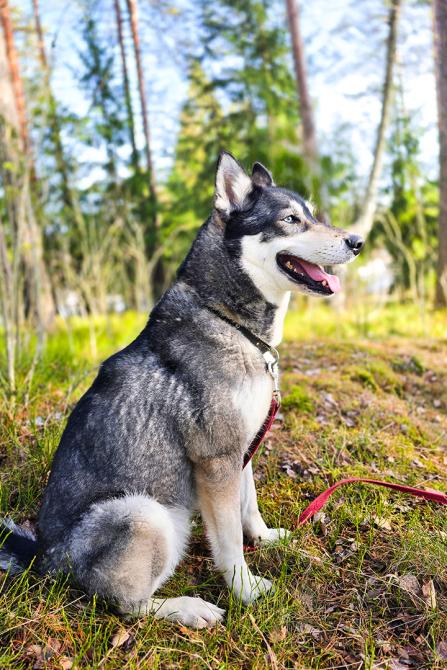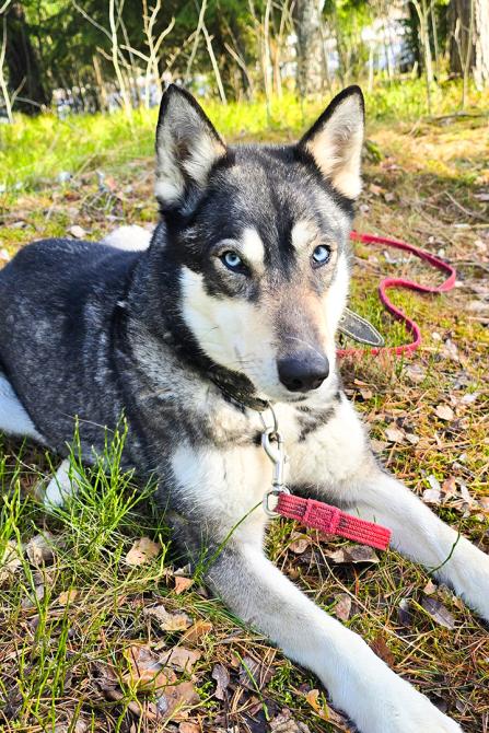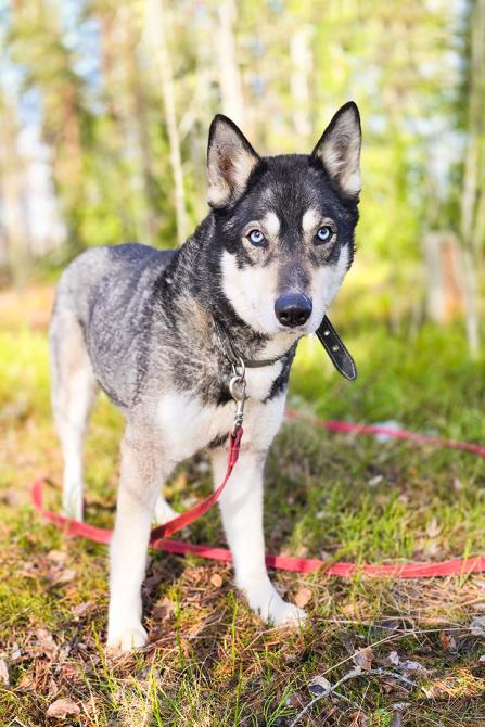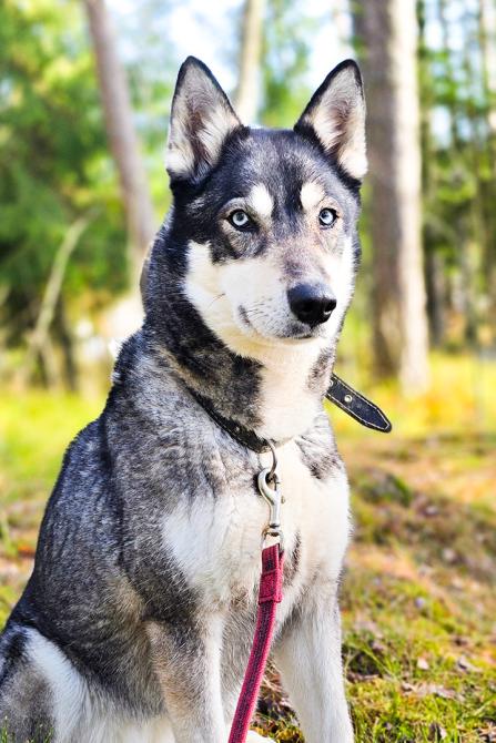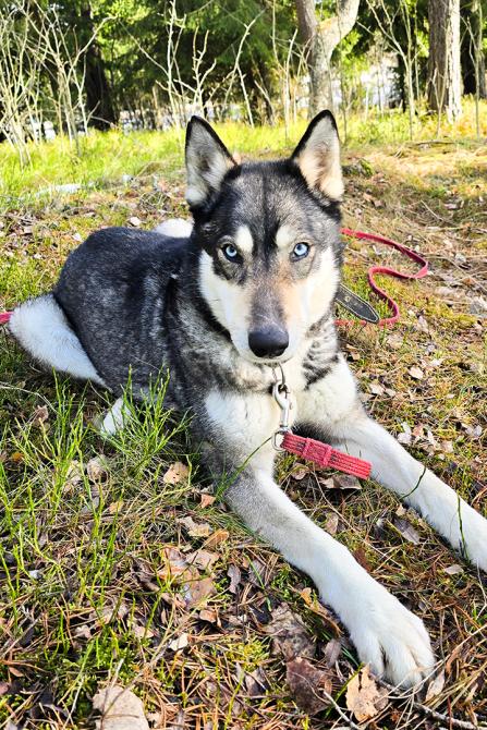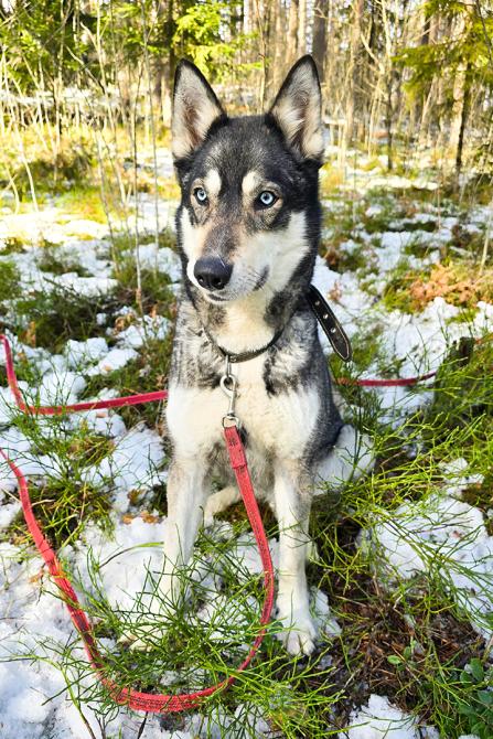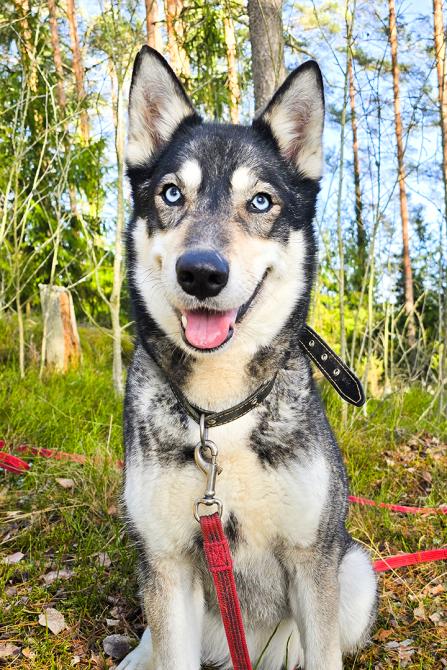 Terra on noin 55 cm korkea ja painoa sillä on arviolta hiukan alle 25 kg. Ei olisi iso yllätys, mikäli tämän kauniin sinisilmän perimästä löytyisi ainakin ripaus huskya ja laikaa.