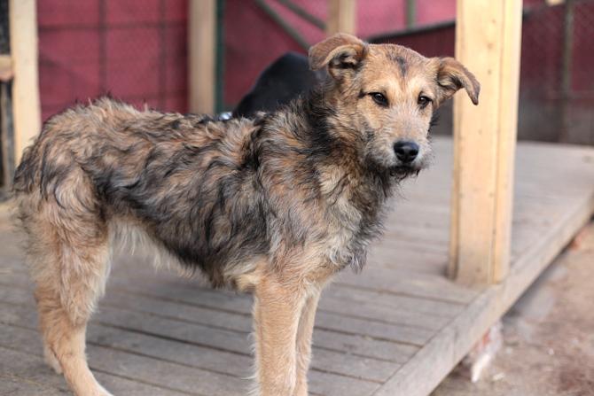 Trina vaikuttaa hieman stressaantuneelta tarhaolosuhteista. Koiratarhalla ei ole omaa rauhaa, vaan koirat joutuvat sietämään jatkuvaa hälinää. Kun yksi koirista aloittaa haukkumisen, herkästi lähistöllä olevat koirat lähtevät mukaan. Meteli onkin välillä korvia huumaavaa. Omaa tilaa ei ole, jossa juosta kunnolla ja purkaa stressiä liikkumiseen. Trinankin aitaus on pieni. Liikuntaympyrä kiertää kopin takaa, pienen etupihan kautta ja taas kopin taakse. Joten ei ole ihme, että välillä koirat tarhalla stressaantuvat. Trina unelmoikin reippaista ulkolenkeistä oman rakkaan ihmisensä kanssa.