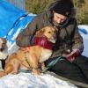 Bamse asuu samassa aitauksessa Belkan, sekä toisen narttukoiran kanssa. Kolmikko on asunut yhdessä jo pitkään ja tulee hyvin toimeen keskenään. Aitaukseen mentäessä Bamse tulee rauhallisesti ja hieman varoen nuuhkimaan meitä, mutta ei kuitenkaan vetäydy koppiin. Puemme sille varusteet, joita saakin jatkuvasti olla säätämässä suuremmiksi, sillä Bamse on kerännyt itselleen reippaasti ylipainoa tarhavuosinaan. Pieni mutta painava paketti kannetaan sylissä tarhan ulkopuolelle.