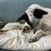 Bonya jakaa aitauksen nuoren tyttökoiran kanssa. Kaksikko tulee hyvin toimeen keskenään. Reipas kaveri tulevassa kodissa voisi tehdä hyvää Bonyalle, joten ensisijaisesti Bonyalle etsitään koirakaverillista kotia.