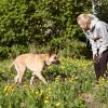 Boskor porhalsi vapaana tarhan edustalla, ilahtui vieraista, juoksi toisen luota toisen luo ja testasi namituomisemme. Se on iloinen ja hyväntuulinen koira, joka suhtautuu ystävällisesti jokaiseen tulijaan. Tällä kertaa joukossamme oli myös Boskorille ennestään tuntematon mies, eikä Boskor jännittänyt myöskään tätä lainkaan.