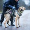 Varusteet eivät ole Brucelle täysin vieraita, ja Bruce kulkee melko nätisti hihnassa. Mukana on sen aitauskaveri ja suuntaamme kaksikon kanssa pois päin tarhalta. Lähellä on autotie ja liikenne on hiljaista, mutta Bruce pelkää silti kovasti muutamaa ohi ajavaa autoa. Se kiskoo hihnassa ojaan päin ja sitä saa todella pidellä.