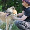 Dante seurustelee mielellään ihmisten kanssa, mutta kuumana hellepäivänä sillä on tukala olla. Turkki on paksu ja tiheä, siitä irtoaa tuppoja ja koitamme helpottaa sen oloa harjauksella. Dante antaa nätisti käsitellä itseään. Muutama ylimääräinen kilo on valahtanut herran vyötärölle sitten kevättalven, joten tulevassa kodissa on laitettava linjat kuntoon.
