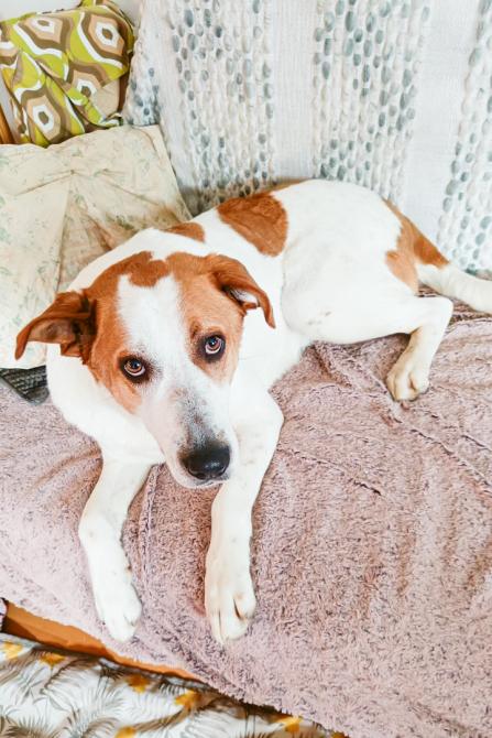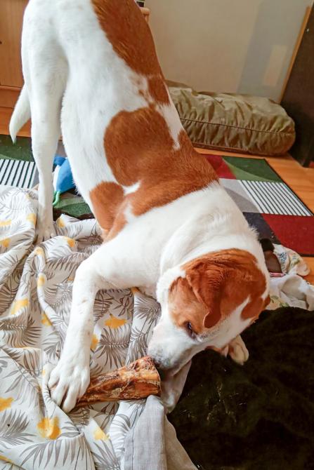 Ystävällinen Douglas lienee ollut aiemmin kotikoira, sillä se on sopeutunut vaivattomasti hoitopaikan arkeen.