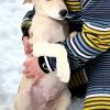 Eemeli kuuluu pentueen lyhytkarvaiseen kastiin. Ei se elo muutenkaan mitään juhlaa tarhalla ole, mutta Eemelillä ei ole edes kunnollista karvaa suojanaan. Lämpötilan painuessa välillä pakkasen puolelle ja välillä tihuttavaan vesisateeseen, on märkyys ja kylmyys paha yhdistelmä. Eemeli on päässyt välillä kurkistamaan tarhan aitojen ulkopuolellekin, kun se otettiin valokuvattavaksi. Ilmeestä välittyy pienen pojan jännitys, mutta vierellä oleva ihminen kelpasi hyvin turvapaikaksi.